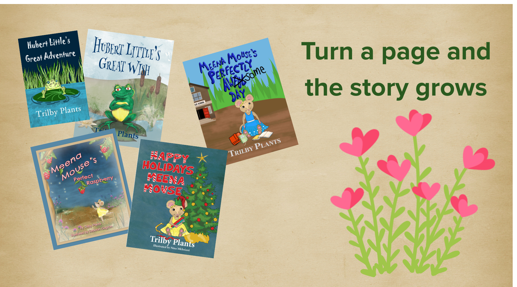 I recently decided to rebrand myself because I’ve discovered I really like to write for children. I have published five picture books for ages 3-8: Meena Mouse’s Perfect Raspberry, Happy Holidays, Meena Mouse, Meena Mouse’s Perfectly Awful Day, Hubert Little’s Great Adventure, and Hubert Little’s Great Wish. Beeya Goes to the Zoo will come out soon.